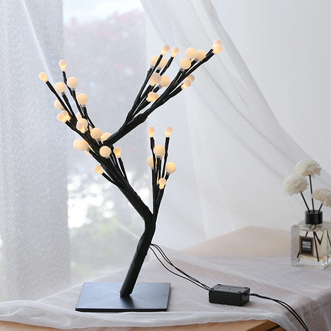 Bonsai de flor de cerezo hecho a mano, luz LED, iluminación decorativa interior blanca cálida para decoración de escritorio de vacaciones de Navidad